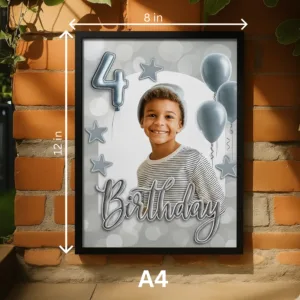 Metallic 4th Birthday Collage – Silver Balloon Theme
